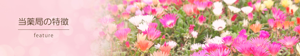 当店は女性スタッフが多く、細かい心遣いと温かで相談しやすい雰囲気作りを大切にしています。患者さまとの距離感が近く、お薬のことを始め、介護や食事のアドバイス、ご家族からのお悩みなど気軽に打ち明けて頂けることは、当薬局の自慢でもあります。